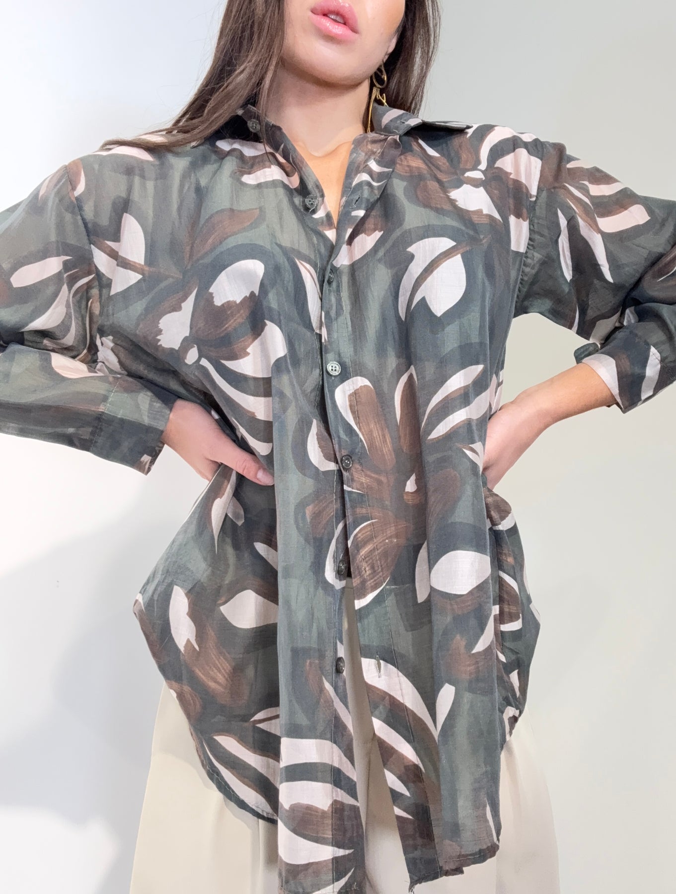 Camicia velata taglio a spalla più ampio vestibilità oversize fantasia floreale